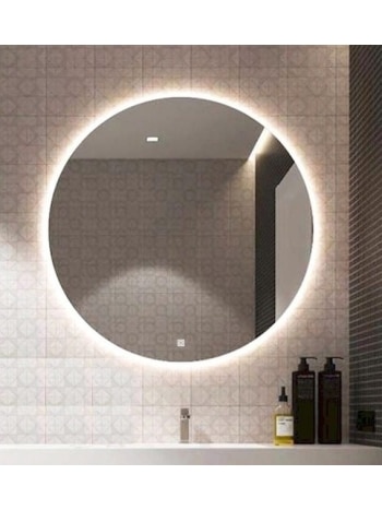Minimalist round backlit LED mirror designed for modern bathrooms and vanity spaces. Offers soft ambient lighting, high energy efficiency, and a sleek look.