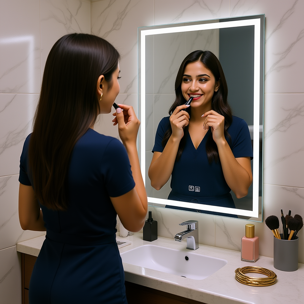 Premium LED Mirror India with a gentle lighted design for modern bathrooms, vanity spaces, and grooming stations. Ideal for clear, even lighting and a luxurious touch.