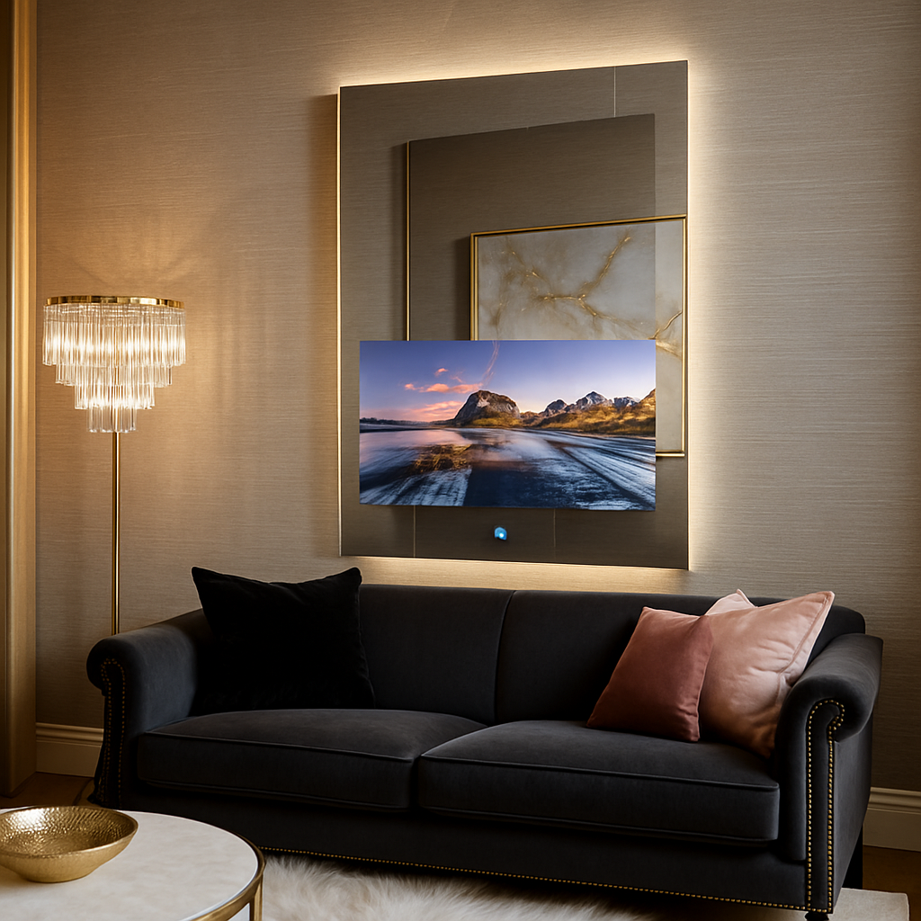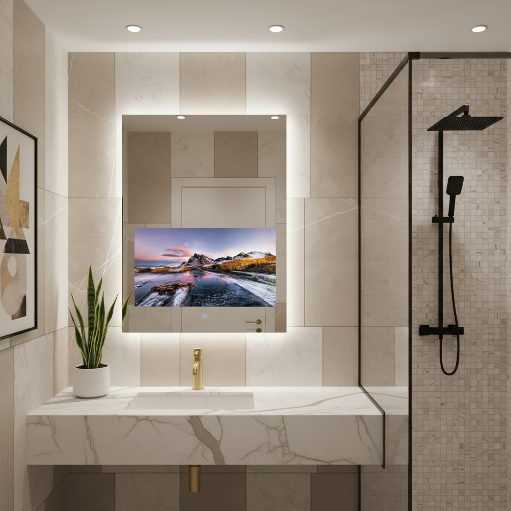 This frameless, anti-fog mirror offers a crystal-clear reflection while functioning as a smart TV. The premium LED backlighting enhances the ambiance, making it a perfect addition to any modern space.
