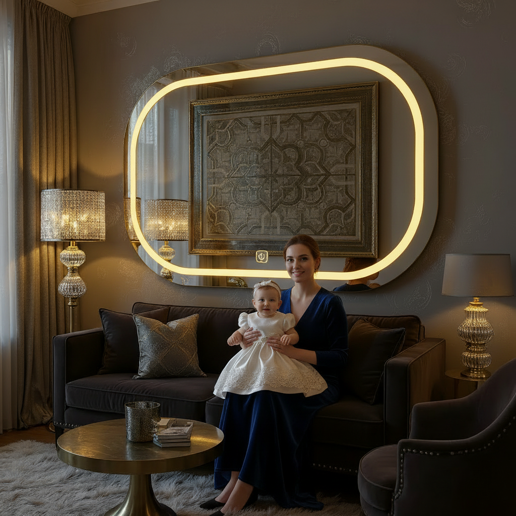 Premium LED Mirror India with a gentle lighted design for modern bathrooms, vanity spaces, and grooming stations. Ideal for clear, even lighting and a luxurious touch.