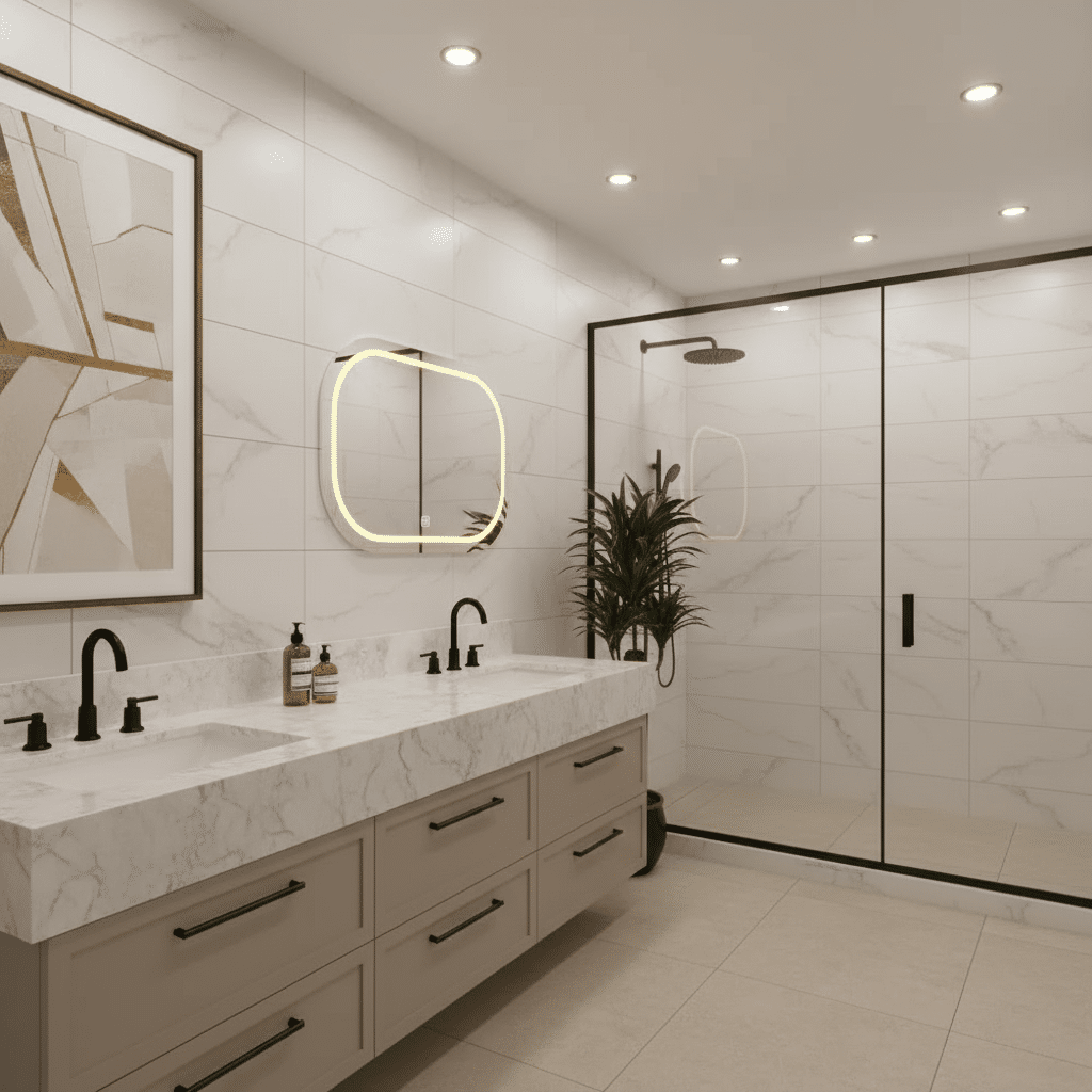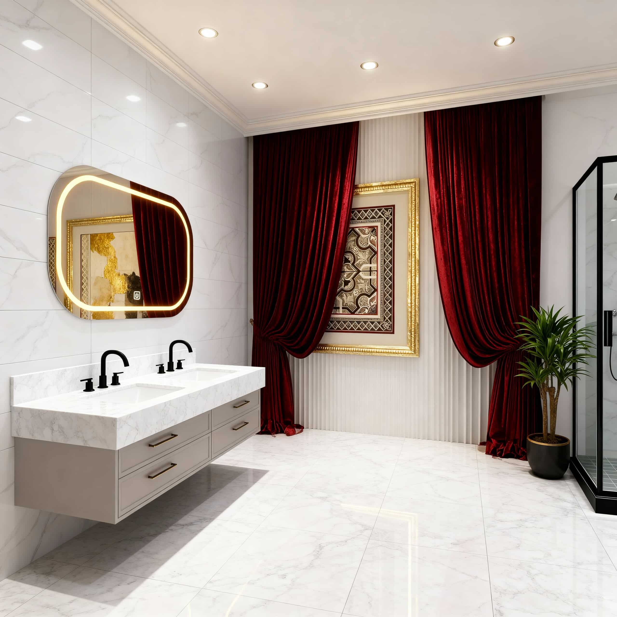 - Hero Image: Mirror in luxury double vanity setup
