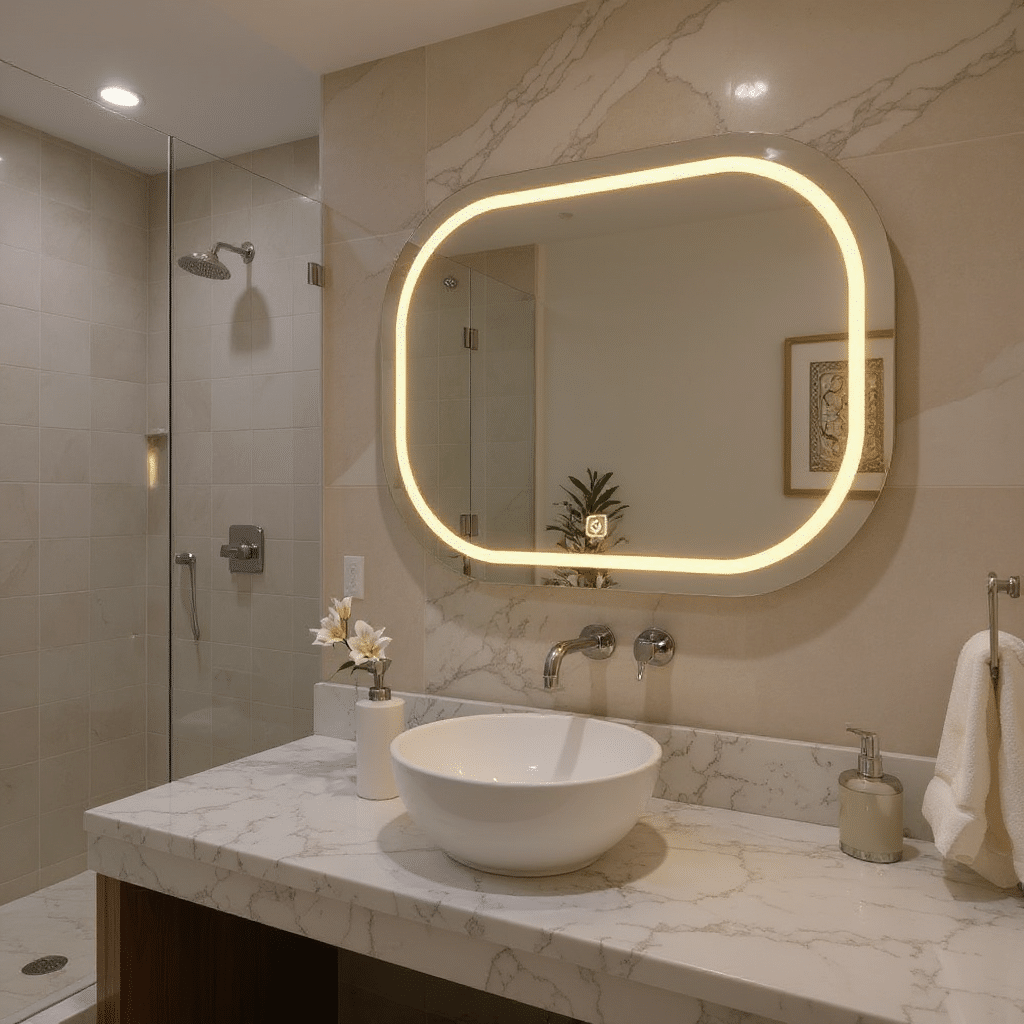 Premium LED Mirror India with a gentle lighted design for modern bathrooms, vanity spaces, and grooming stations. Ideal for clear, even lighting and a luxurious touch.
