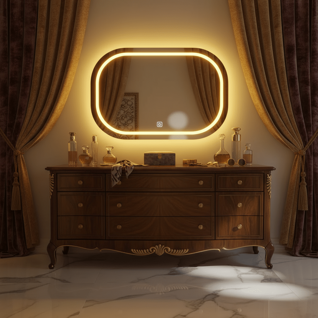 Elevate your daily routine with our <strong>bathroom vanity mirror with LED light, combining studio-quality illumination with smart anti-fog technology. Designed in collaboration with celebrity makeup artists, this mirror delivers perfect lighting for makeup, shaving, and skincare routines.