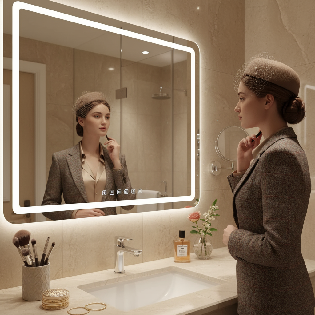 Premium LED Mirror India with a gentle lighted design for modern bathrooms, vanity spaces, and grooming stations. Ideal for clear, even lighting and a luxurious touch.