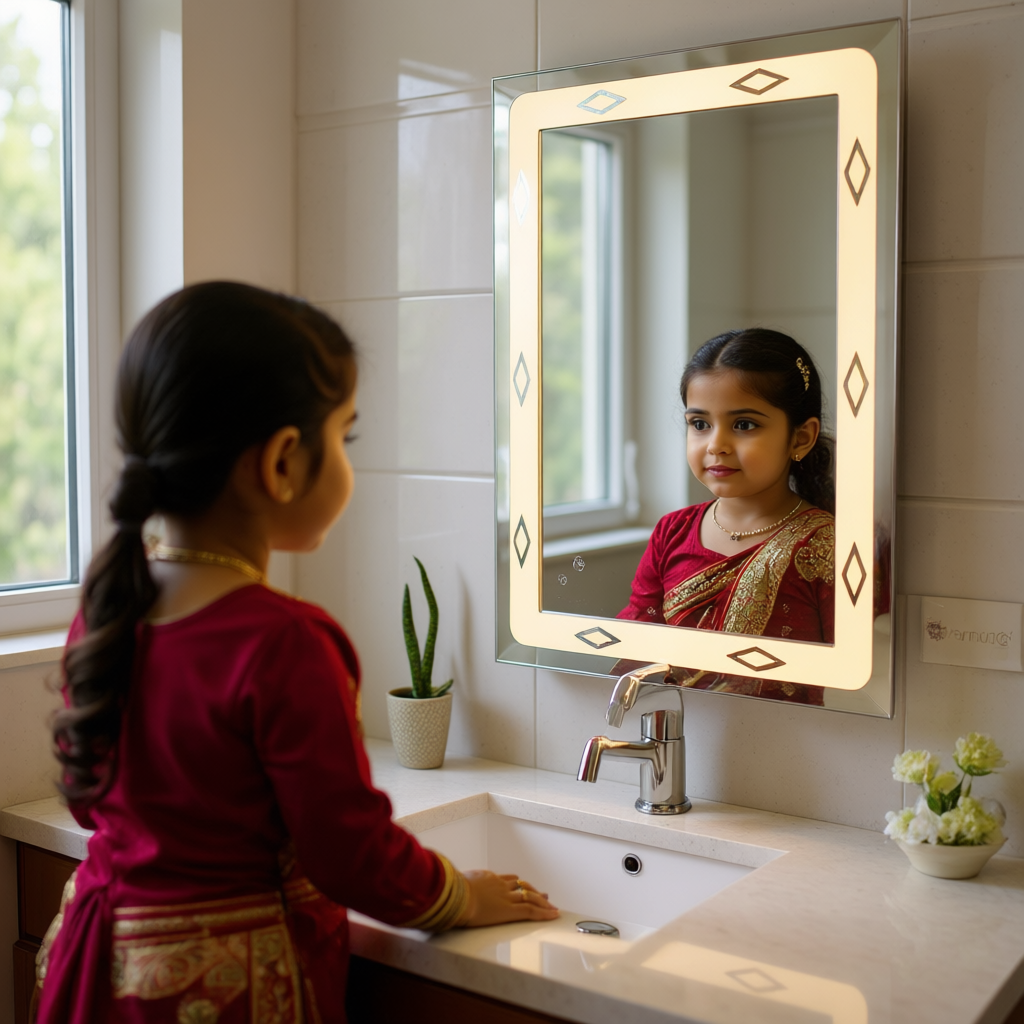Premium LED Mirror India with a gentle lighted design for modern bathrooms, vanity spaces, and grooming stations. Ideal for clear, even lighting and a luxurious touch.