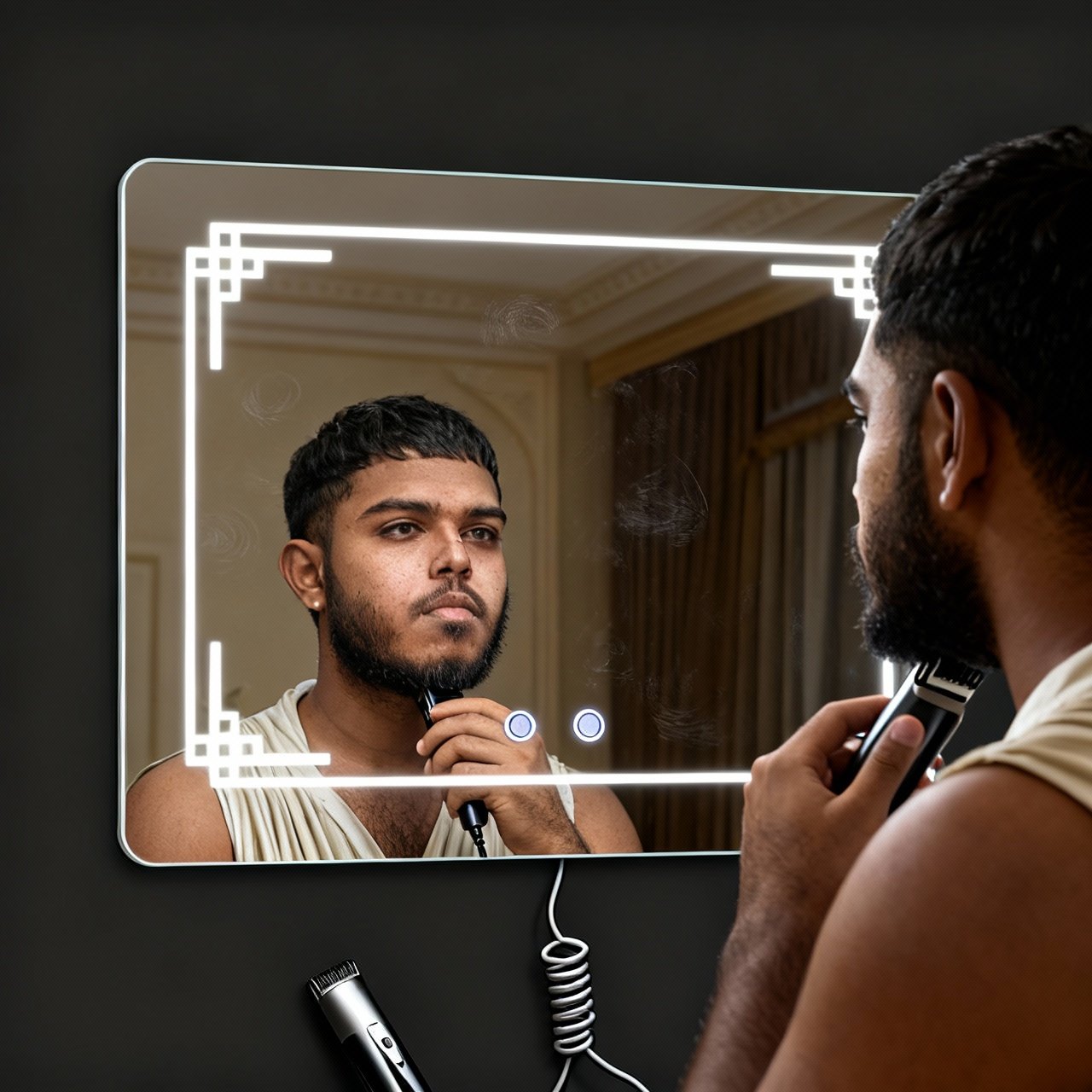 Experience uninterrupted clarity with our premium defogger wash basin mirror with LED, designed to eliminate fogging and provide perfect illumination. This innovative anti-fog bathroom mirror combines advanced heating technology with energy-efficient LED lighting, ensuring a fog-free reflection even in the steamiest conditions. The LED wash basin mirror is the ideal solution for modern bathrooms that demand both functionality and style.