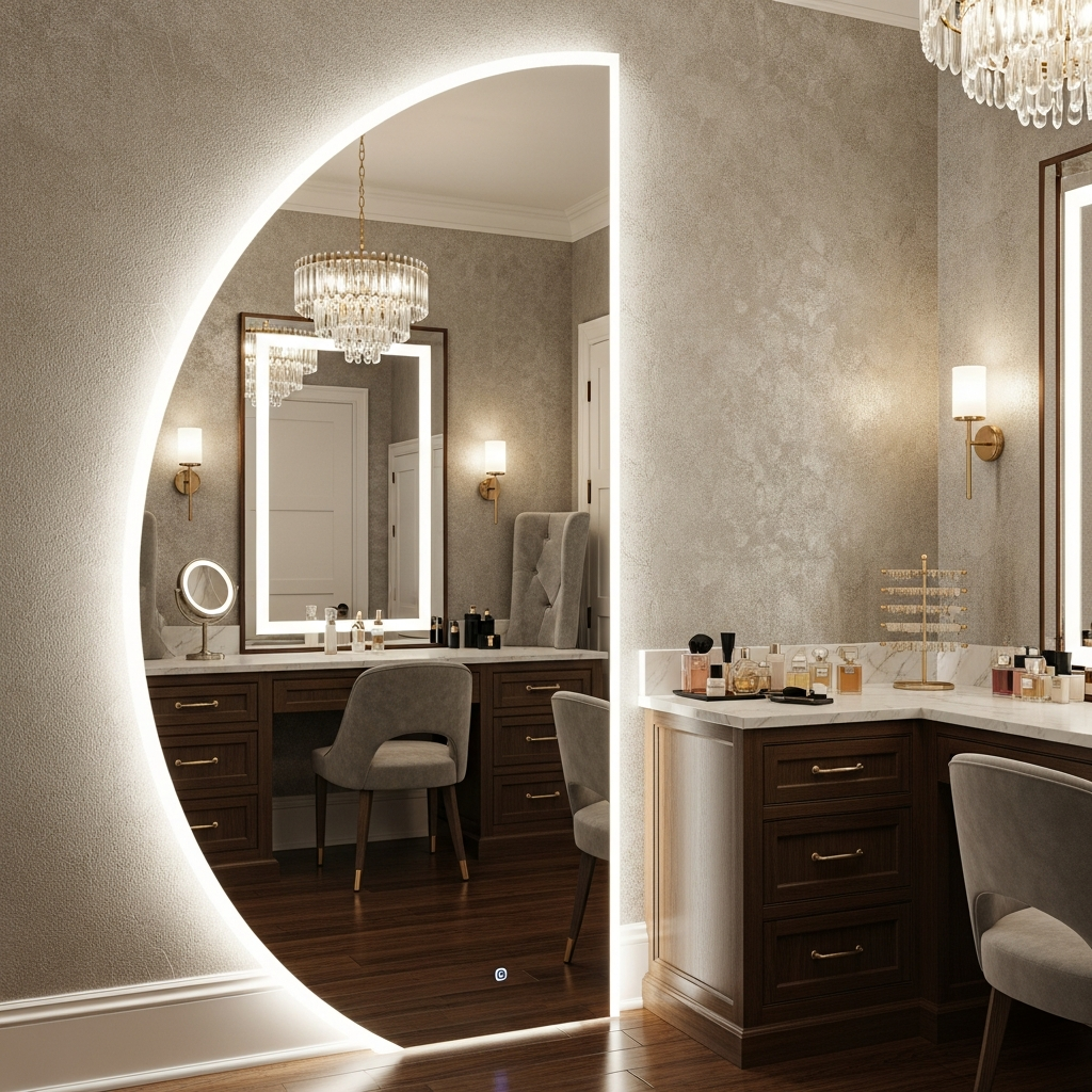 “This half-circle LED mirror transformed our master bathroom from ordinary to extraordinary. The custom size fit our awkward wall space perfectly, and the front lighting eliminates all shadows for perfect makeup application.”