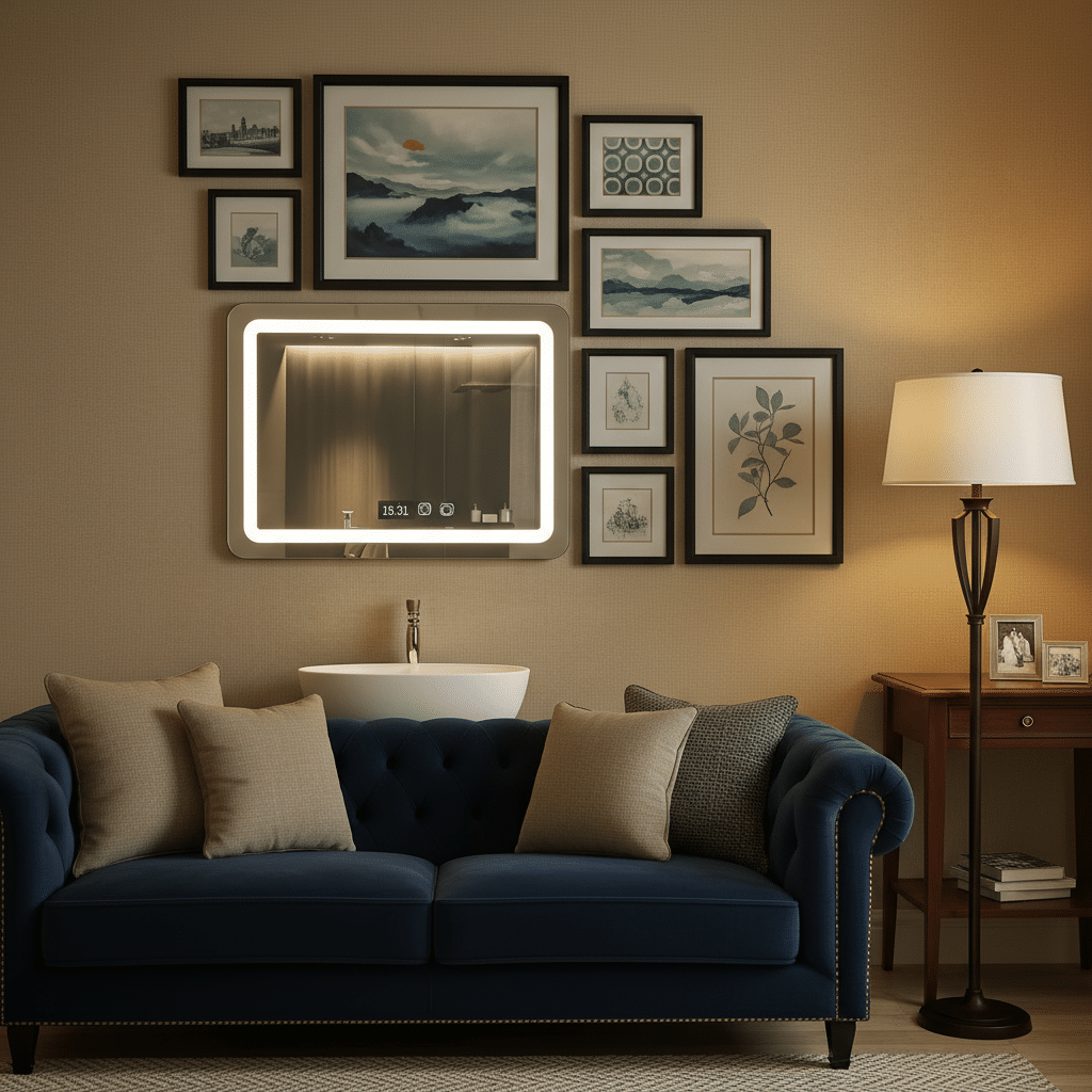 Rectangular LED Mirror India with top LED strip for modern bathrooms, vanities, and grooming areas. Provides even, bright illumination for everyday tasks.
