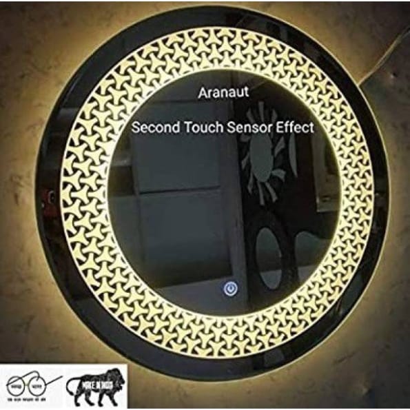 Introducing the decorative round LED sensor mirror India – a stunning blend of aesthetics and technology. This circular mirror features a beautiful patterned LED border and smart touch sensor, making it an eye-catching and functional addition to bathrooms, bedrooms, or vanity spaces.