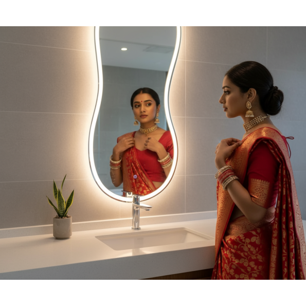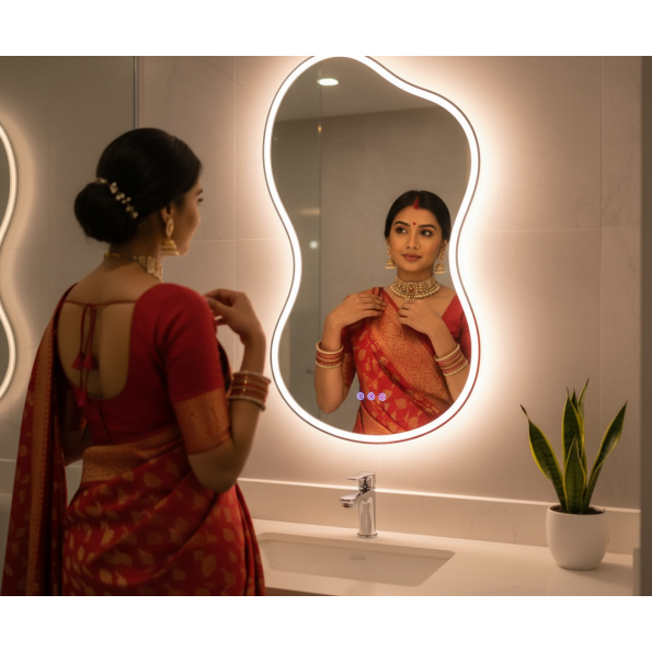 Upgrade your bathroom, dressing area, or living space with our Modern LED Backlit Mirror. Designed for those who love sleek, contemporary aesthetics, this irregular-shaped mirror enhances any interior with its unique form and soft LED illumination. Whether you need it for your bathroom vanity, dressing table, or hallway, this mirror offers both functionality and style.