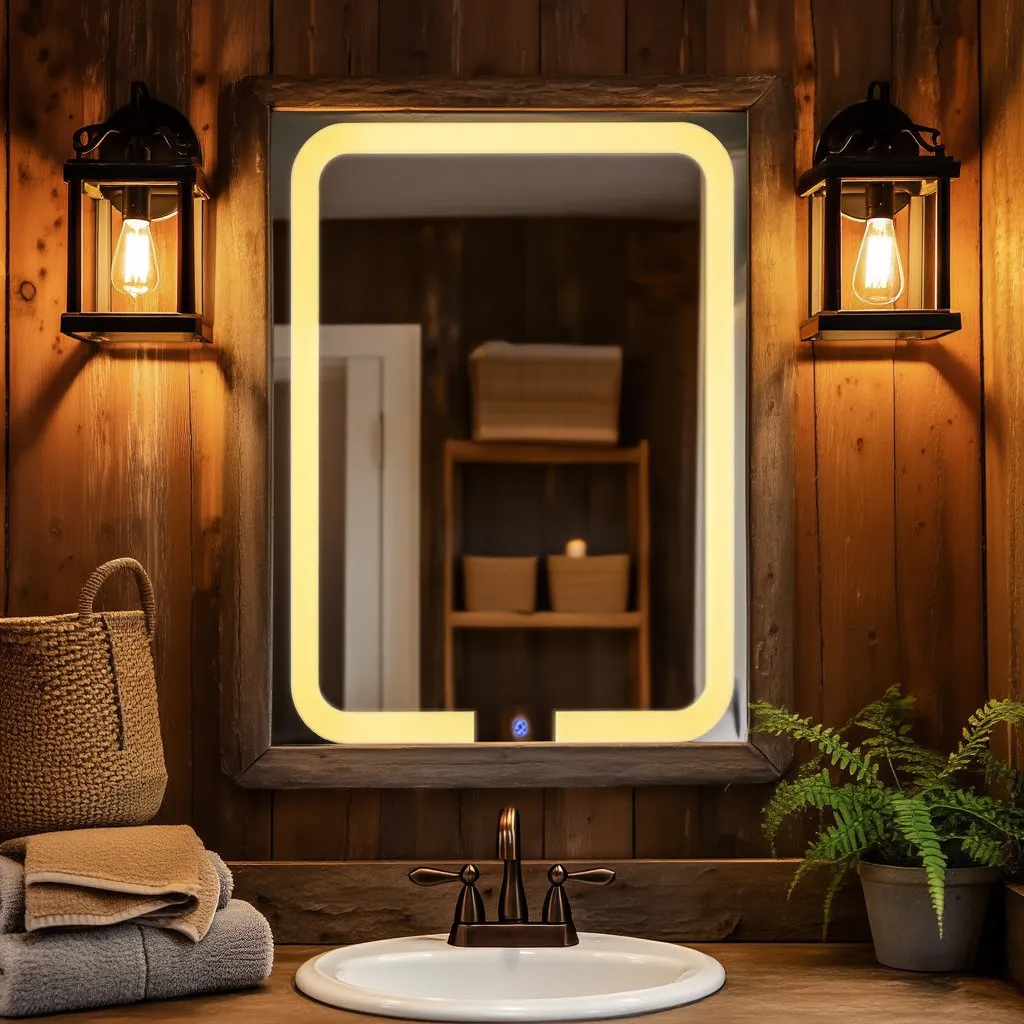 Smart illuminated SC LED mirror with anti-fog technology and adjustable lighting (3000K-6000K). Features touch controls, energy-efficient LEDs, and sleek modern design. Perfect for homes and commercial spaces.