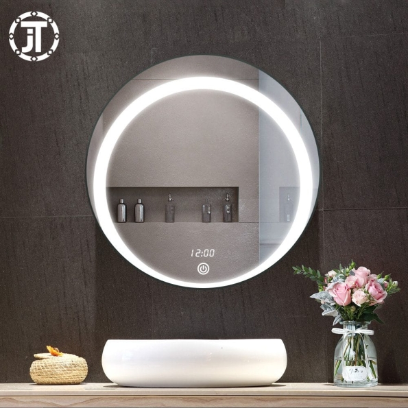 Enhance your bathroom with this Round LED Bathroom Mirror featuring backlit LED lighting and a digital display for time. Ideal for modern spaces, it provides bright, even illumination. For bulk orders, contact us at +919894233337 or sales@ledmirror.in.
