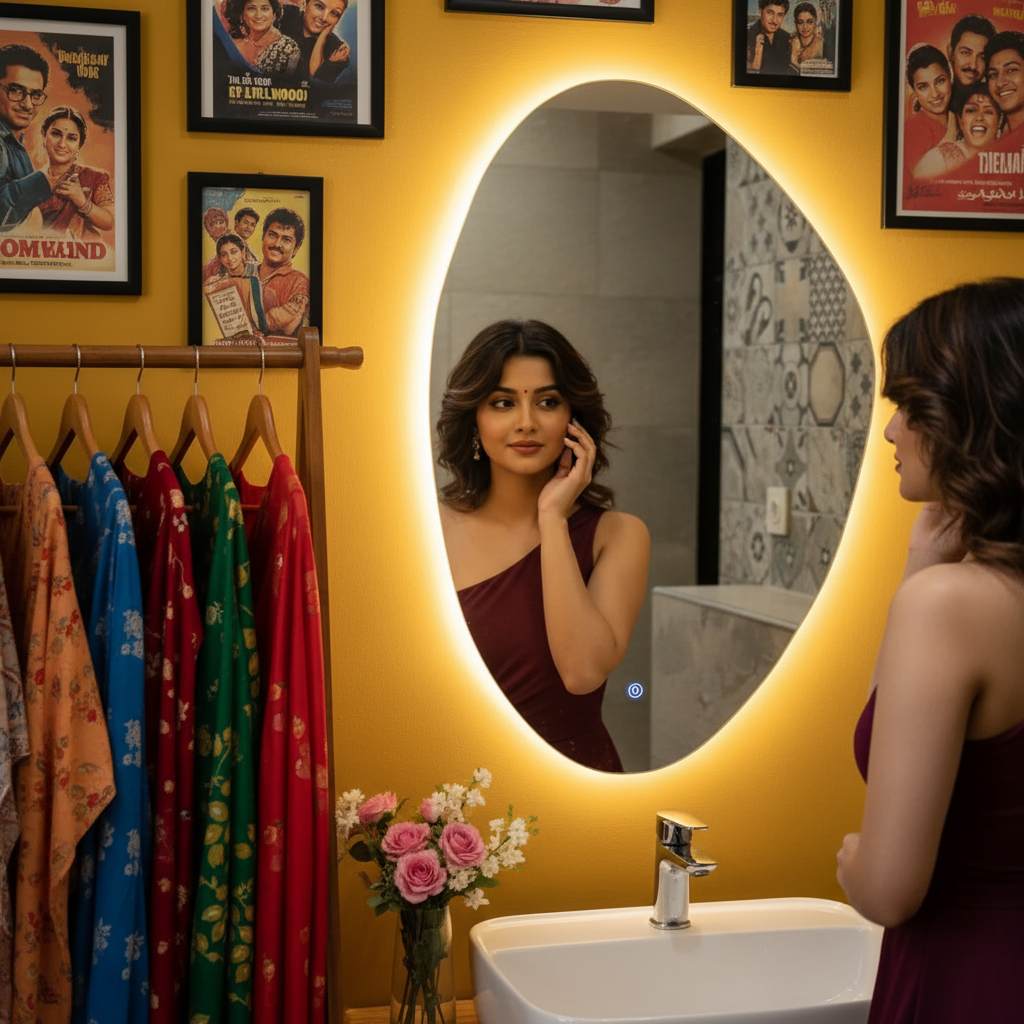 Oval LED Mirror India with an illuminated LED ring. Perfect for modern bathrooms, grooming areas, and luxury vanity spaces.