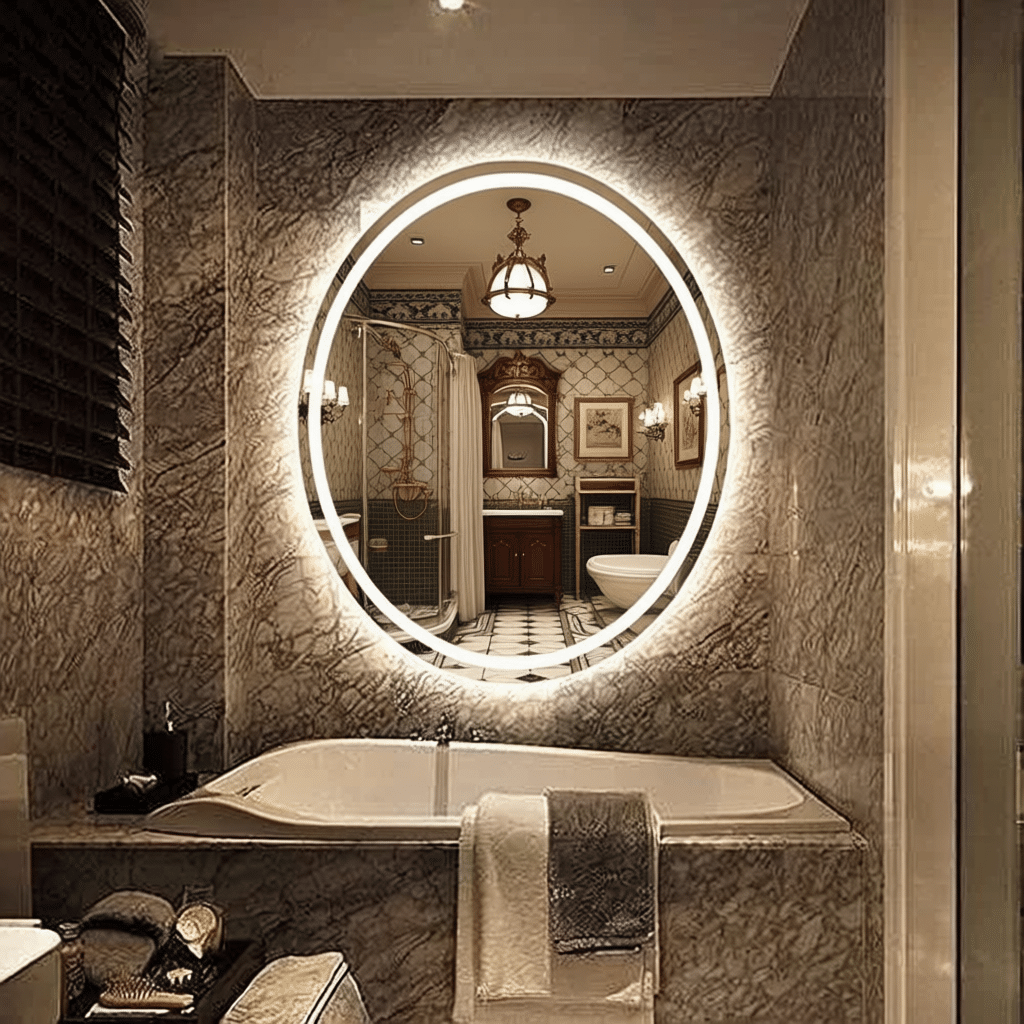 Oval LED Mirror with Backlit Edge for Elegant Bathrooms