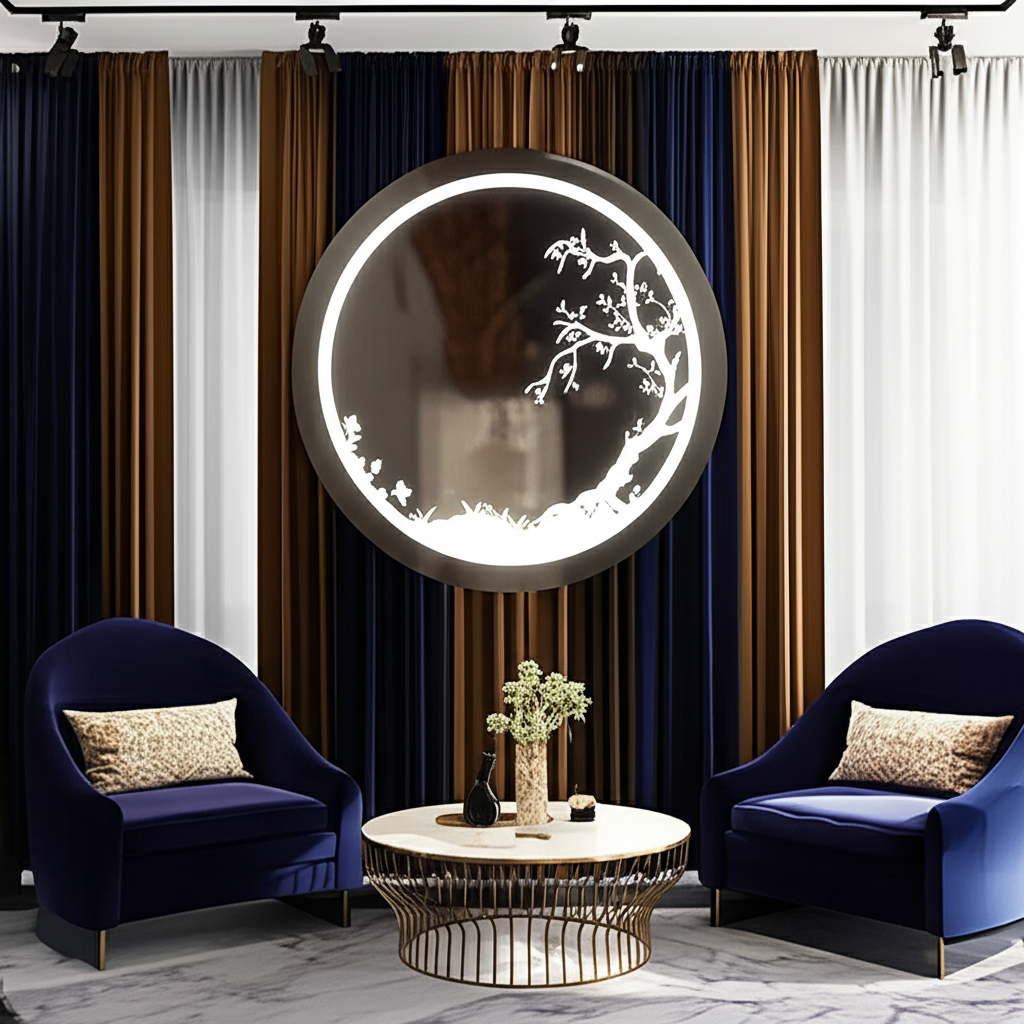 Elevate the ambiance of your home or office with our Circular LED Mirror with Artistic Tree Design. Combining modern design with artistic expression, this mirror serves as both a functional piece and a captivating work of art. Perfect for bathrooms, living rooms, and hallways, it brings a touch of elegance and tranquility to any room.