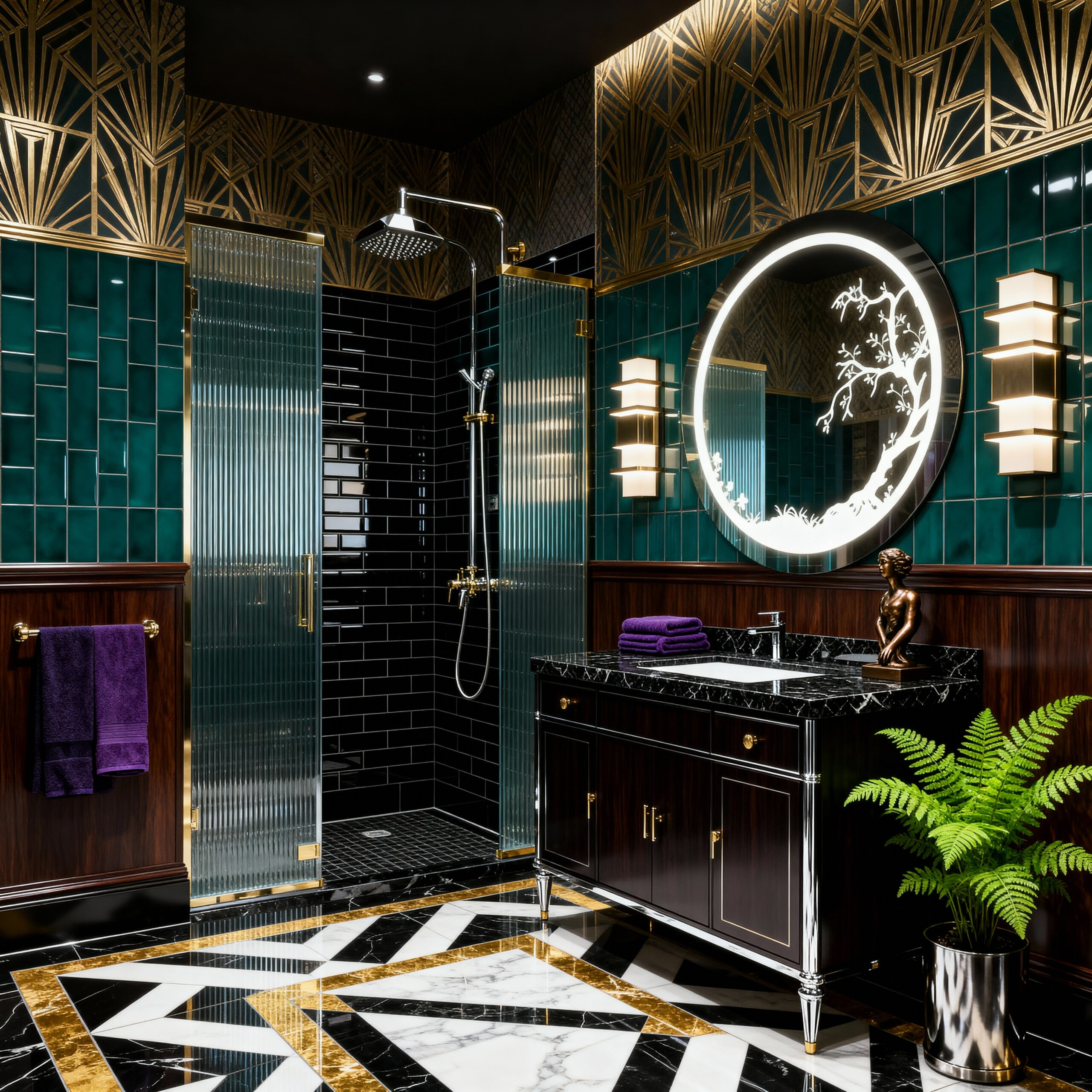 Transform Your Space with the Circular LED Mirror with Artistic Tree Design